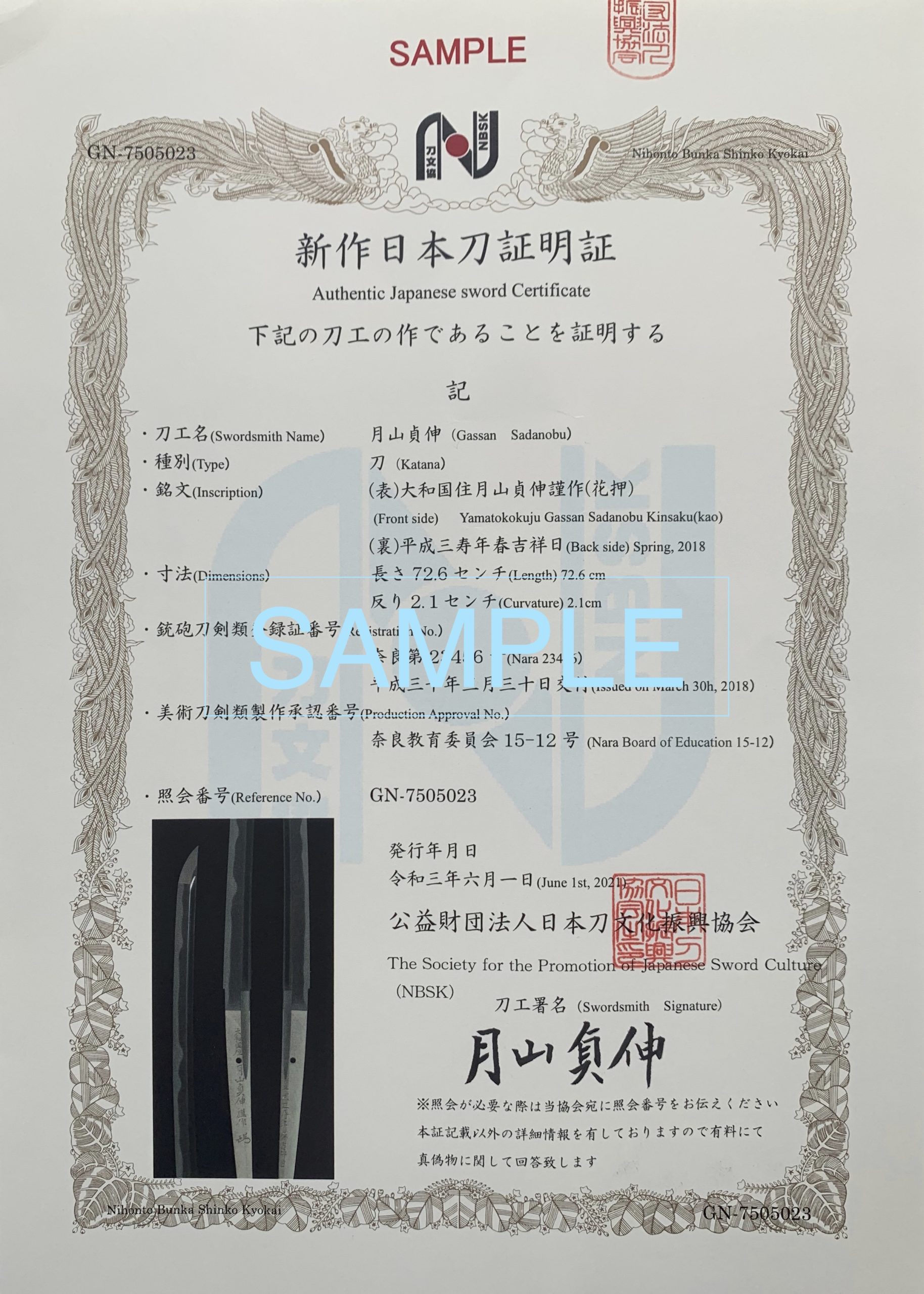 from June 2021, NBSK started issuing ‘Newly Made Japanese Sword Certificate’s to maintain the
